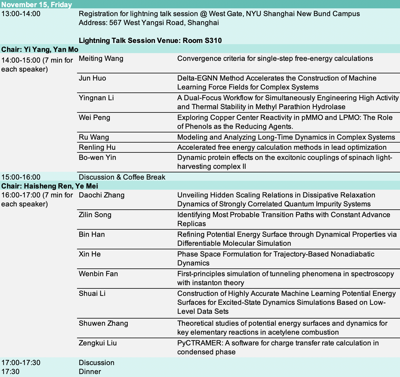 Lightning Talk Session Venue (快闪报告环节地点): Room S310, NYU Shanghai New Bund Campus